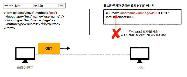 : 조회는 GET 사용 (GET은 쿼리 파라미터 사용해서 데이터를 전달)