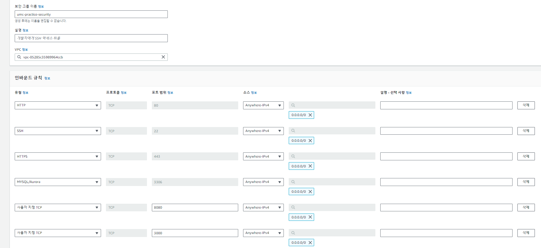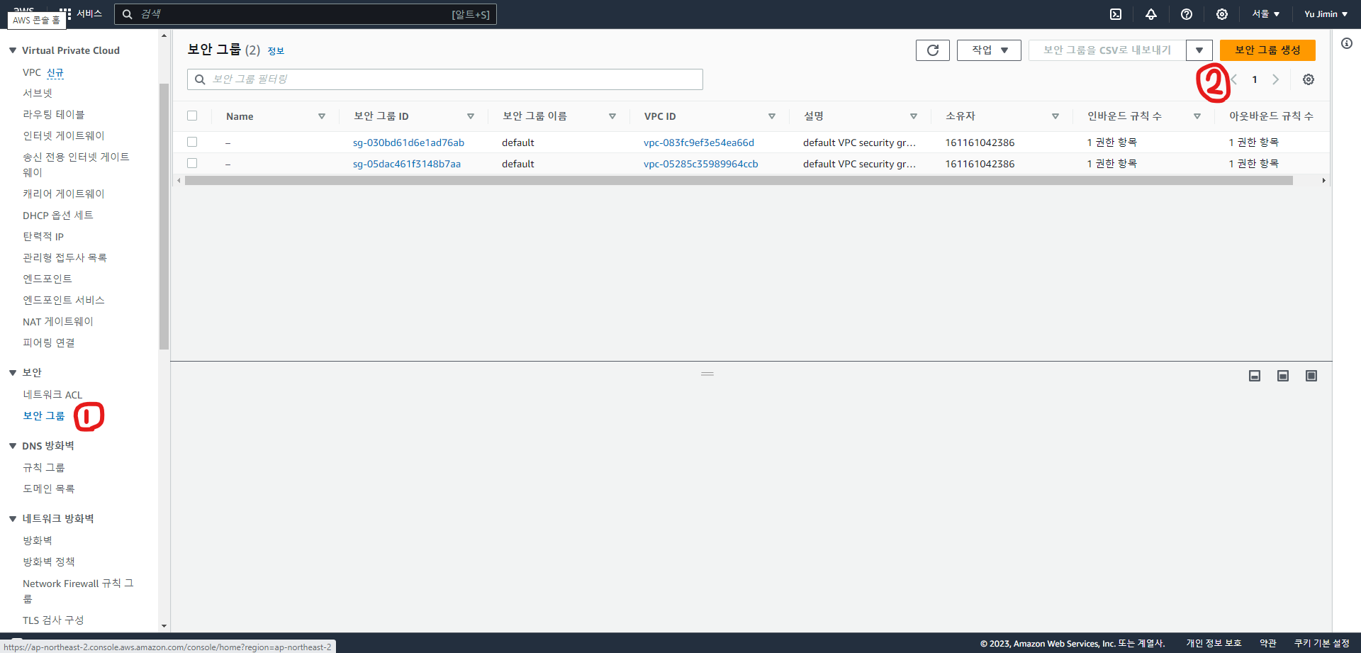 1) 보안그룹 이름 : 식별할 수 있는 보안그룹 이름으로 설정