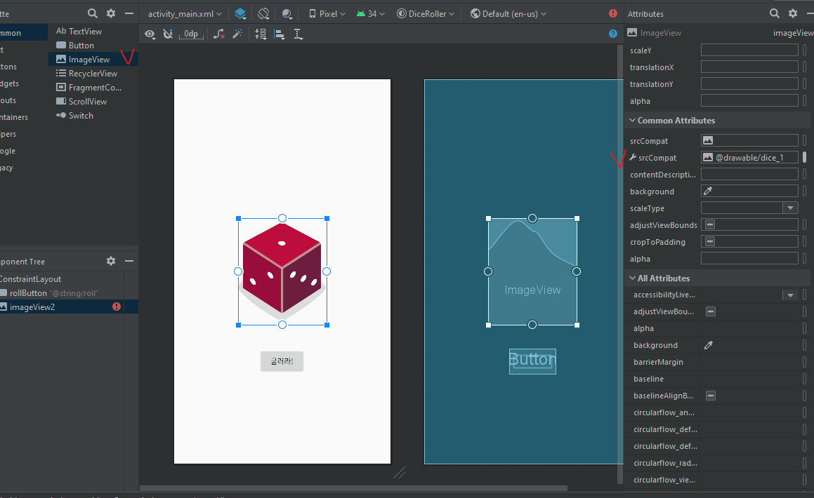 activity_main.xml에서 주사위 그림을 넣어준다.