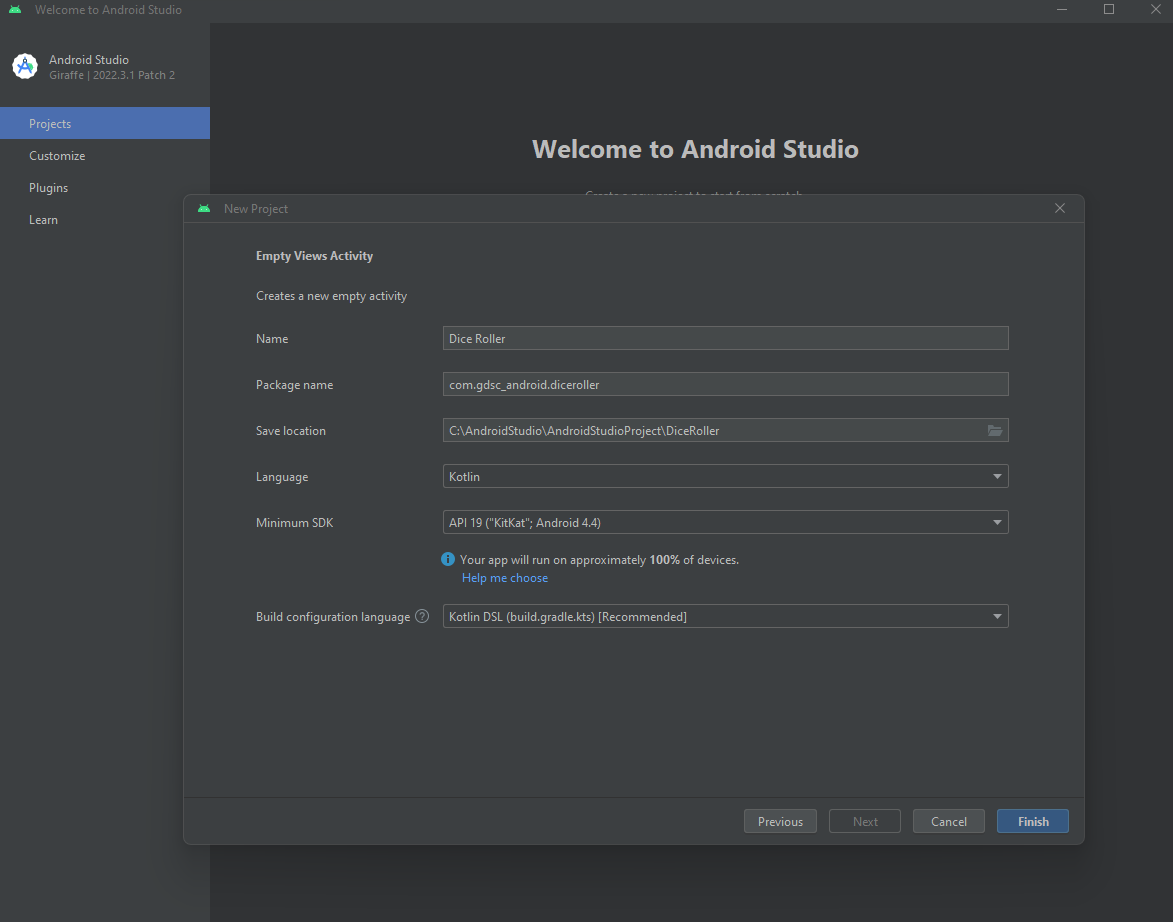 - DiceRoller의 경우 단순하게 com.gdsc_android.diceroller로 설정함