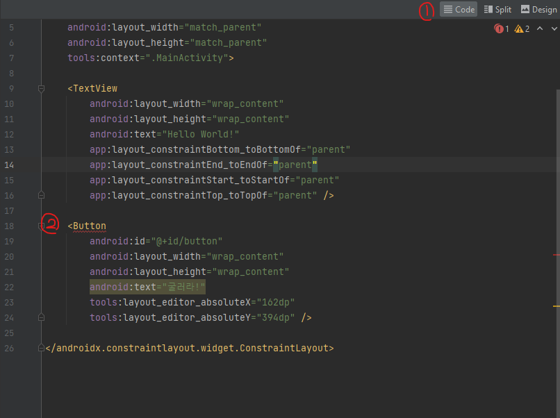 실제로 상단에 Code 버튼을 클릭하여 XML 파일을 살펴보면