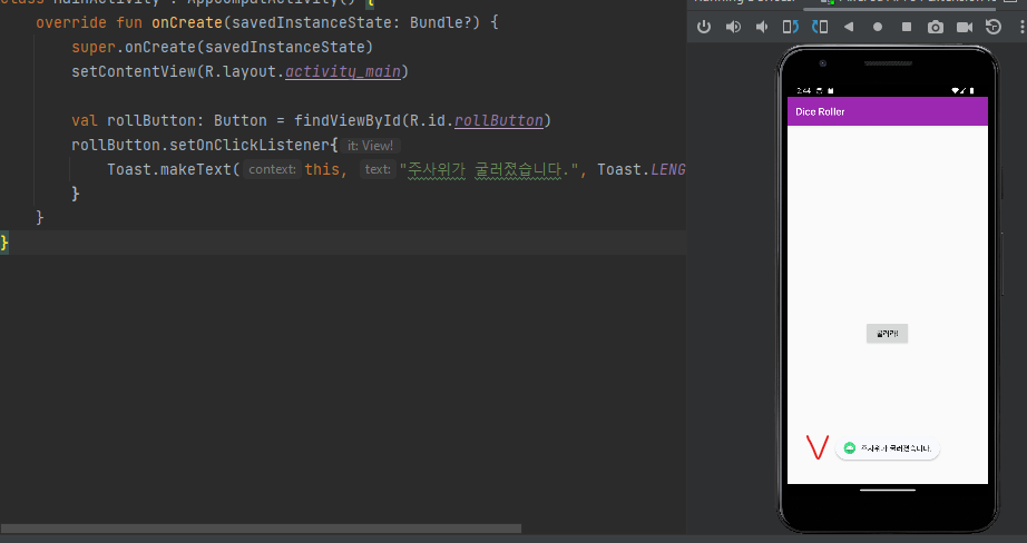 Activity를 수정하여 버튼을 누르면 주사위가 굴려지도록 해보자.
