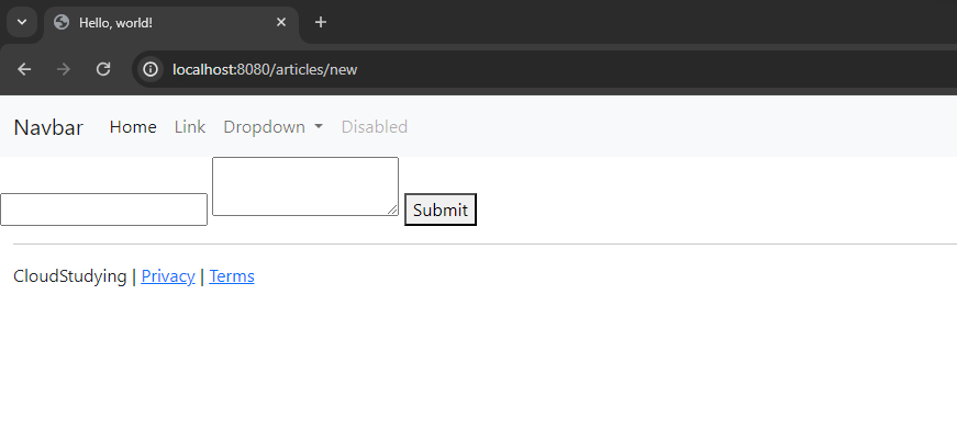 따라서 localhost:8080/articles/new 에서 새로운 데이터를 생성한 후,