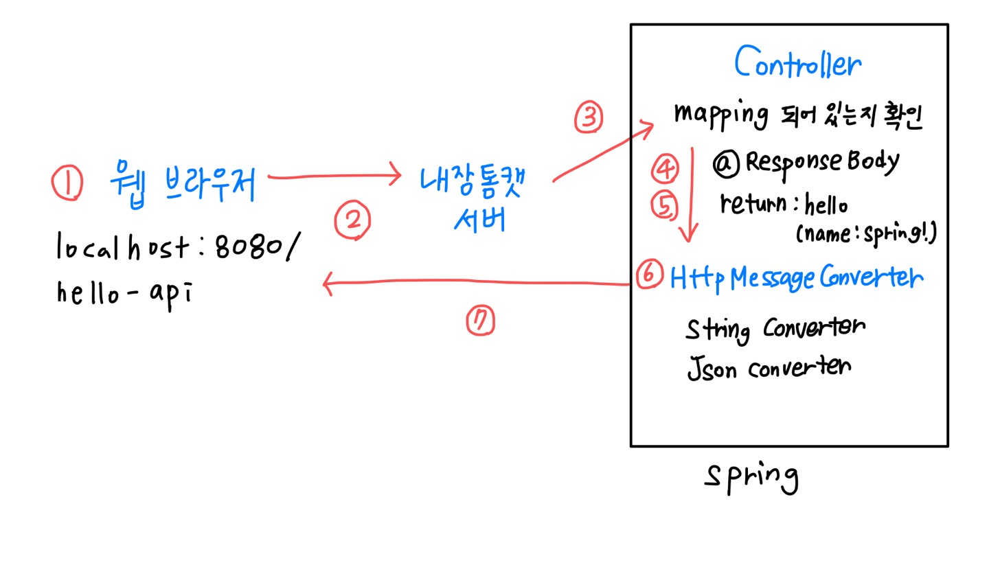 1) 웹 브라우저에서 localhost:8080/hello-api 에 접속