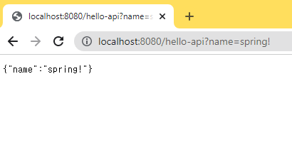 http://localhost:8080/hello-api?name=spring! 에 접속하면,