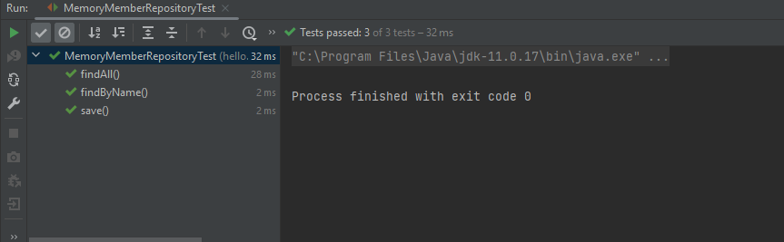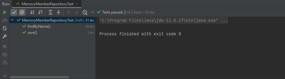 memorymemberrepositoryTest.java에도 코드를 추가한다.