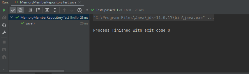 repository 패키지에 MemoryMemberRepositoryTest 클래스를 만든다.