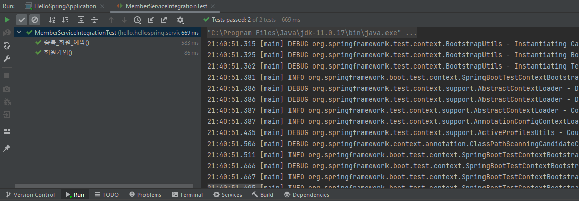 앞서 섹션 6.3 에서 작성한 스프링 통합 test 코드를 통해 간단하게 확인할 수 있다.